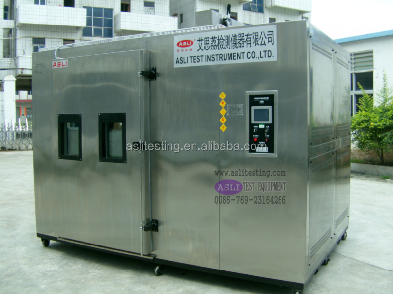 This burn-in test oven walk-in stability chamber is designed to test various materials for their tolerance to heat, cold, dry, and humidity conditions. It is ideal for quality inspection of large test samples across multiple industries including electronics, electrical appliances, communications, instruments, automotive, plastics, metals, food, chemicals, building materials, medical devices, and aerospace.